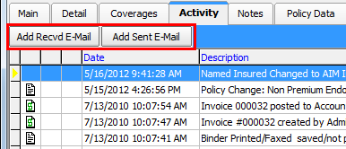 - Click Add Recvd E-Mail to add a received e-mail message or Add Sent E-Mail to add an e-mail message that you sent. The process of attaching the e-mail message and any attachments is described in Attach E-Mail to Activity Log.