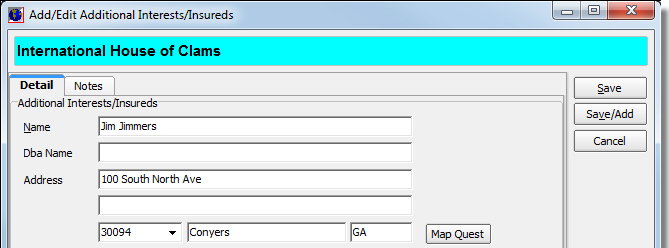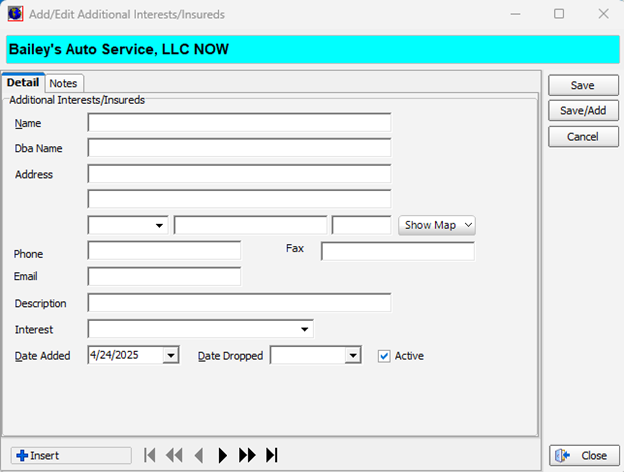 Close Add/Edit Additional Interests/Insureds |