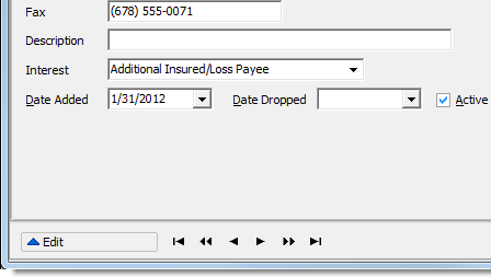 - In the Additional Interests/Insureds pane, enter
