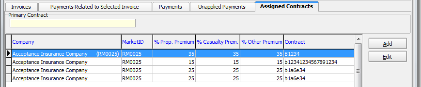 On the Assigned Contracts tab, you can view and edit contracts assigned to the policy.