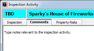 - On the Comments tab, type any notes relevant to the inspection activity in the text box.
