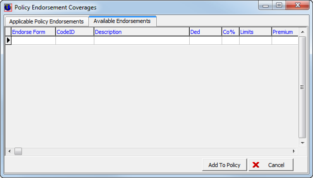 - Select an endorsement form, and then click Add To Policy to add the endorsement form to the policy.