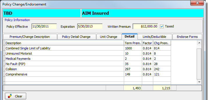 The Detail tab is used to break down the endorsement by coverage line in order to provide further detail in the endorsement document.