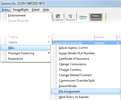 - On the Policy menu, point to Misc, and then click File Assignment.