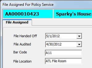 - Bar Code – bar code ID of the file assigned for policy service
