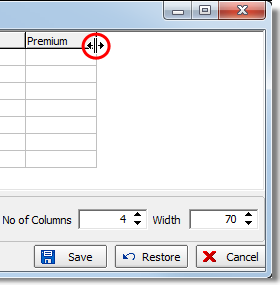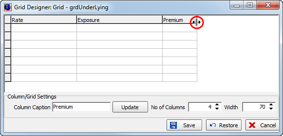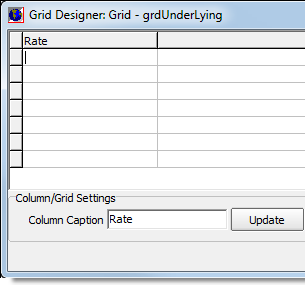 You can use Grid Designer to alter the grid shown on the Underlying tab. You can add columns to the grid and control the width of the column, that is, the maximum number of characters that the column can contain. Additionally, you can provide a name for each column that appears in the grid.