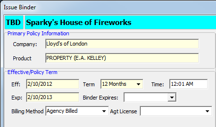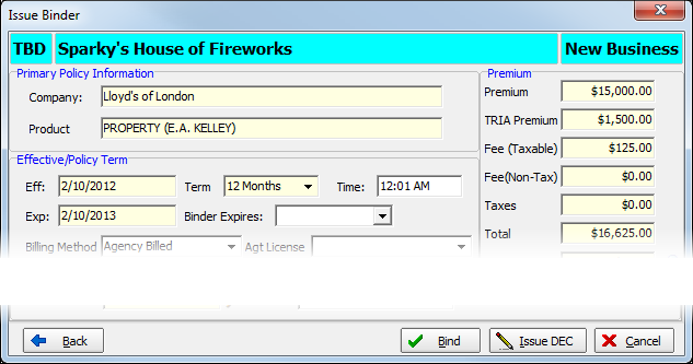 - Fee (Non-Tax) – non-taxable fees on the binder