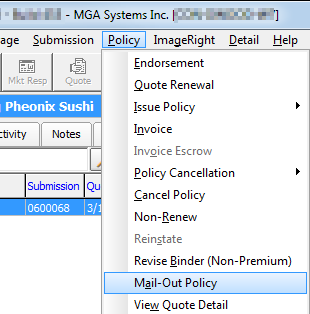 - On the Policy menu, click Mail–Out Policy.