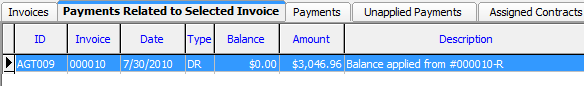 If you need to review payments that are associated with a particular invoice, you can use the Payments Related to Selected Invoice tab.