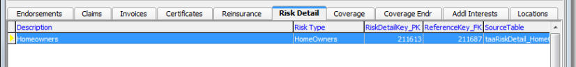 The Risk Detail tab displays a view of information pertaining to risks associated with the selected policy. This information is read-only, that is, it cannot be edited.