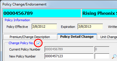 For example, to change the policy number you must first select Change Policy No., and then type the new policy number in the New Policy Number field.