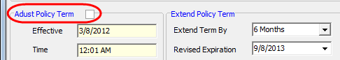 In the Extend Policy Term pane, select a time period by which to extend the policy in the Extend Term By box. The updated expiration date will be displayed in the Revised Expiration box.