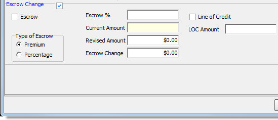 - Type of Escrow – indicates how escrow is calculated