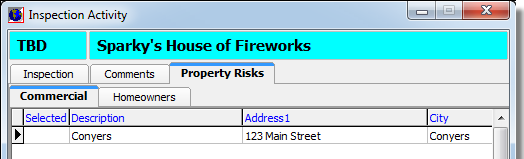You can view the applicable commercial property risks on the Commercial tab. Similarly, you can view homeowner risks by clicking the Homeowners tab.