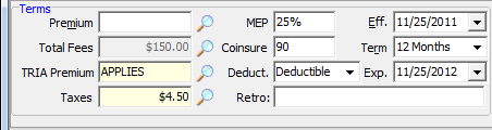 to edit the Fee Schedule.) - TRIA Premium – indicates whether