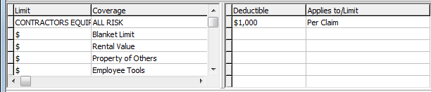 - Applies to/Limit – indicates what the deductible applies to (Click to select from the list.)