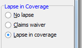 - In the Lapse in Coverage pane, select the option that best describes whether there was a lapse in coverage during the time that the policy was not in effect.