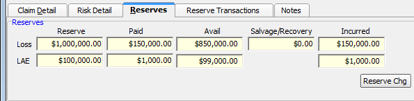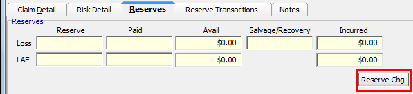 If your agency uses Claims Manager, all claims are entered and updated using that application. The Reserves tab in AIM will be read-only, that is, you will be able to view claims information entered in Claims Manager, but you will not be able to make changes. Additionally, the Reserve Chg button will not be present.
