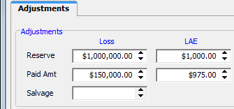 Adjustments pane located on the Adjustments tab, enter the following Loss