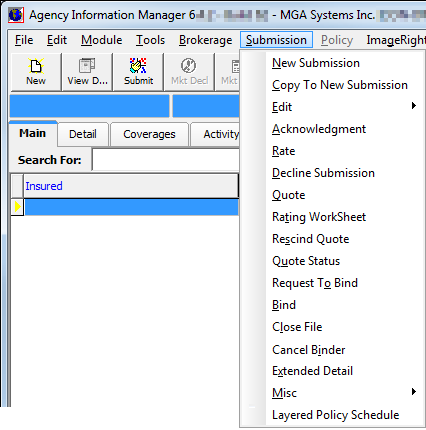 The commands on the Submission menu can be used to create, edit, and manage submissions.