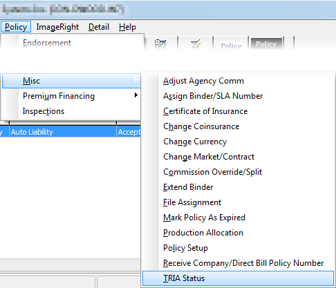 - On the Policy menu, point to Misc, and then click TRIA Status.