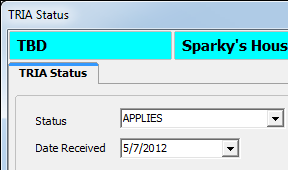 The TRIA Status command is used to indicate the date on which the Terrorism Risk Insurance Act (TRIA) documentation was received from the retail agent. It can also be used to correct the TRIA status of an existing policy.