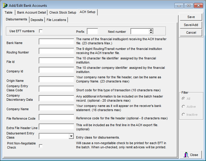 In this topic, we continue our discussion of editing bank accounts that began in Edit Bank Accounts.