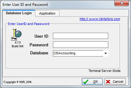 Clicking the Main Menu command causes the Accounting login screen to display.