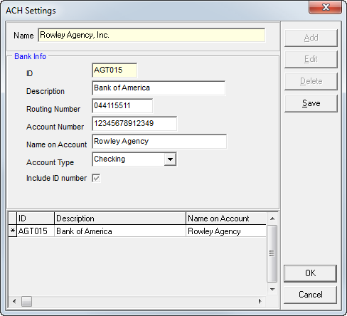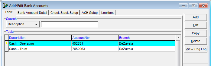 - In Add/Edit Bank Accounts you can click Add to create a new bank account or select an existing bank account and click Edit.