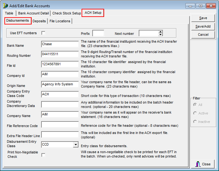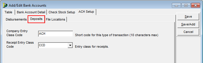- Click the ACH Setup tab, and then click the Disbursements tab.