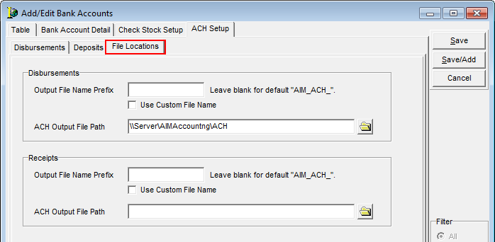 - Output File Name Prefix – The file name prefix for disbursement files. If left blank AIM_ACH is used automatically.