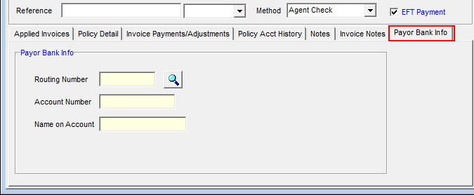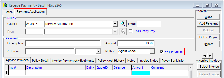 - On the Payment Application tab, enter the agent or insured in the Client ID box.