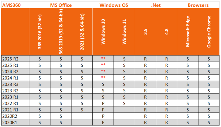 The minimum requirement is for the solution's functionality and may not always provide the optimal experience. Adequate bandwidth is critical for AMS360's performance. Bandwidth requirements vary, and you may need to adjust your bandwidth depending on how you use the Internet for AMS360 and other web applications. |