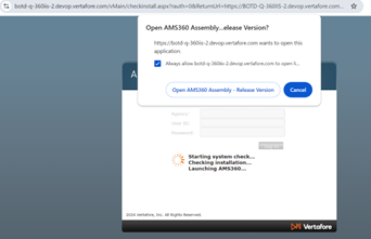 Click on the “Open AMS360 Assembly – Release Version” popup message box.