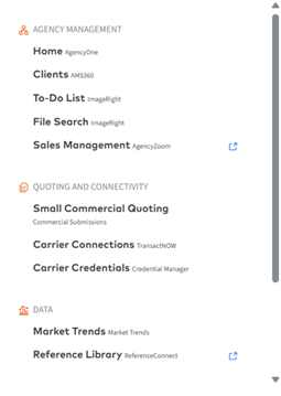 If you are opening directly from the Bento Box icon, the drawer will open to the Vertafore Suite of Products and include product links.