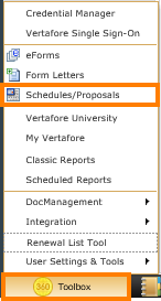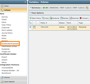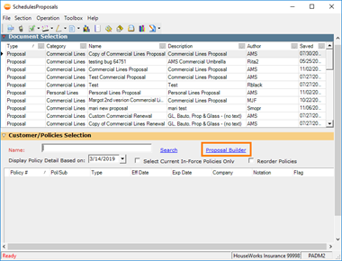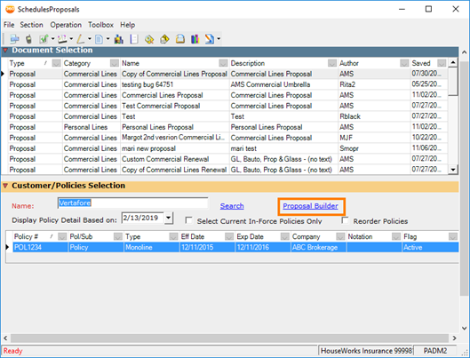 Click on Schedules/Proposals. You can then choose the customer and the relevant policies with which to build your proposal. To select more than one policy, press CTRL and click the additional policies.