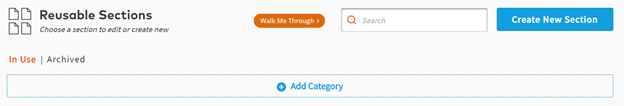 - After creating your section and its subsections, click Save to Library and Exit to return to the Reusable Sections menu.