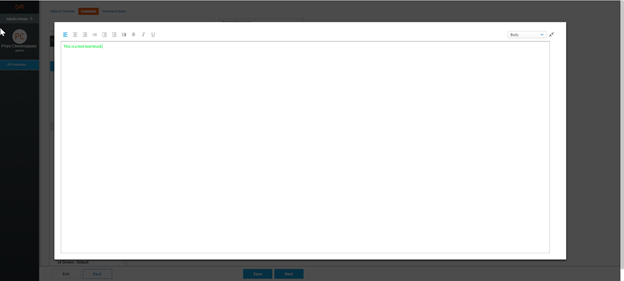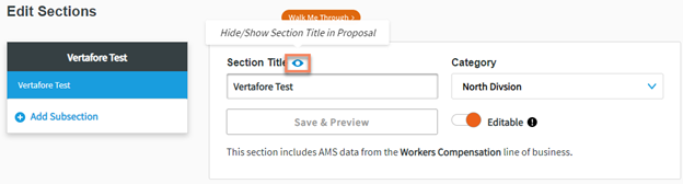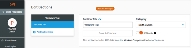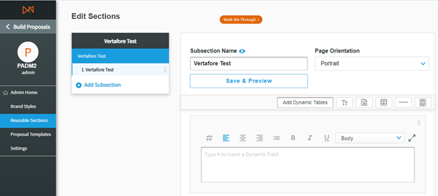 Admins can decide whether a particular section can be edited or not by the Account Managers. This means that the Admin can build the section to be standardized for their organization and potentially mark this content as fixed for all users, so that it is identical in each proposal.