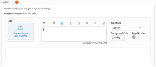 Here you can upload your Cover Page Background (or set your background color) and Logo. Alternatively, you can choose background color instead of an image. Size and resolution recommendations are included with for the background images of each layout template.