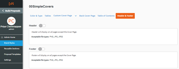 Click the Settings tab on the left-sided menu of Proposal Builder.