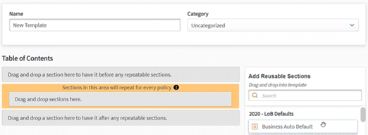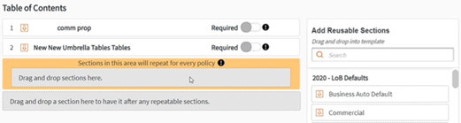 This functionality is available for all new and existing templates. In existing templates, the repeatable box has been added to the bottom of the Table of Contents section and will not impact existing templates unless a section is added to it.