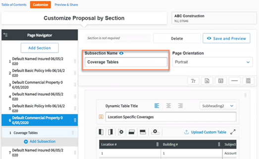 - If you have already prepared data outside of your management system, such as a marketing summary or premium summary, you can upload this data from a spreadsheet into Proposal Builder using the Upload Custom Table feature. This works with CSV, XLS, and XLSX files.