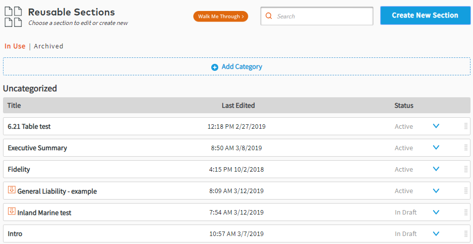 Remember: Reusable Sections must be in Active status to be used in creating proposals. |