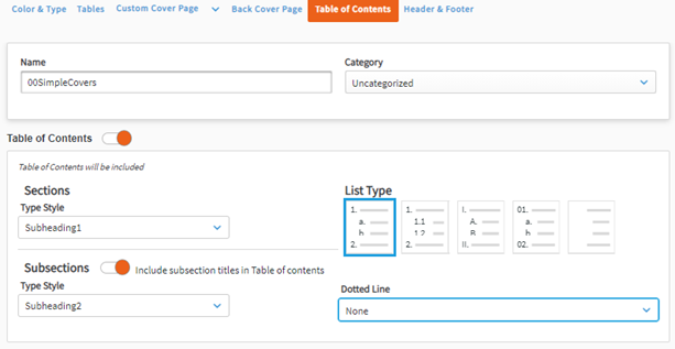 Once you’ve selected your Tables options, click Save and continue to the Front Cover Page Section by clicking Next.