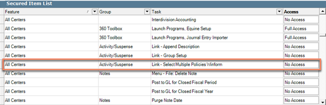 By default, all users will have access to create multiple activities simultaneously, regardless of if "No Access" shows in the Secured Item List.