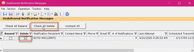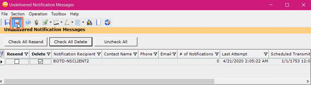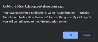 From the pop-up window, click OK to access the Administration Center. From here, navigate to Utilities > Undelivered Notification Messages and Delete any blocked notifications. Click Save & Close.
