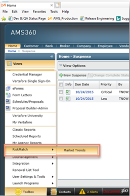 AMS360 now provides direct access to the Vertafore MarketTrends tool. This tool is complimentary and available to all users.