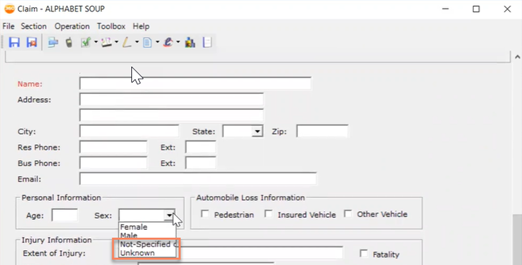 We updated gender codes per ACORD standards. These new gender codes are included in the Sex code drop-downs in the Claim Form – Injured Parties and LOB is Auto (Commercial or Personal) Driver sections. The gender codes added to the PR code table (Attr code is SX) include: