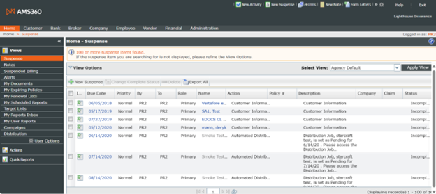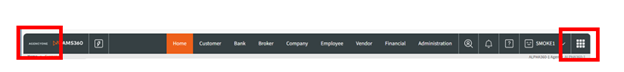 Formerly, AMS360 employed an older functionality to provide users with access to other Vertafore products. Now, the Bento Box / Vertafore Suite serves as a central hub for quick access to these other products. This newly designed look contains navigation buttons (links) that will allow users to effortlessly transition to various associated systems or views.