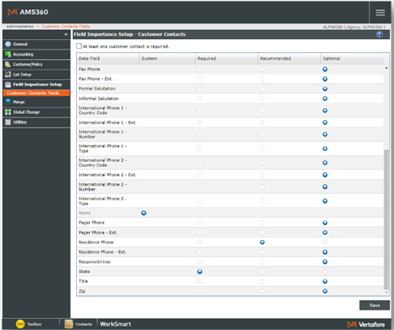 You can now set which fields in Customer Contacts are Required or Recommended from a new section labeled “Field Importance Setup” Customer Contacts Fields view in the Administration Center.
